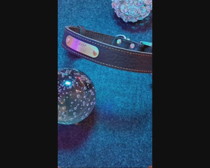 - SELECTED QUALITY MATERIALS:All processed materials are completely safe for your four-legged friend's skin. The robustly processed collar is a real quality product with a unique look. Not only the noble color and the engraved dog tag, but also the processing of every single detail, is of high quality. The double-stitched D-ring and the unbreakable buckle are made of sturdy metal.