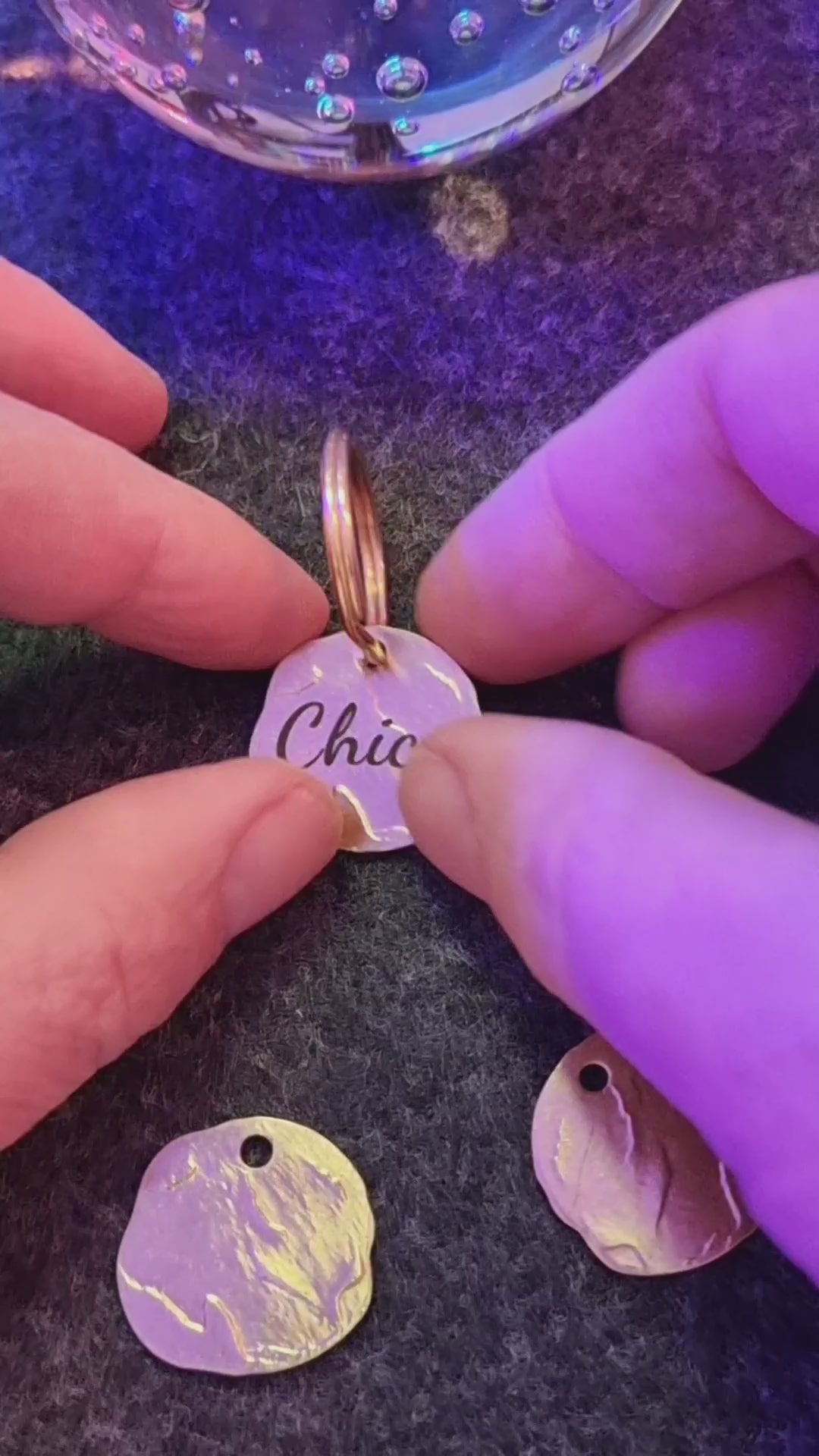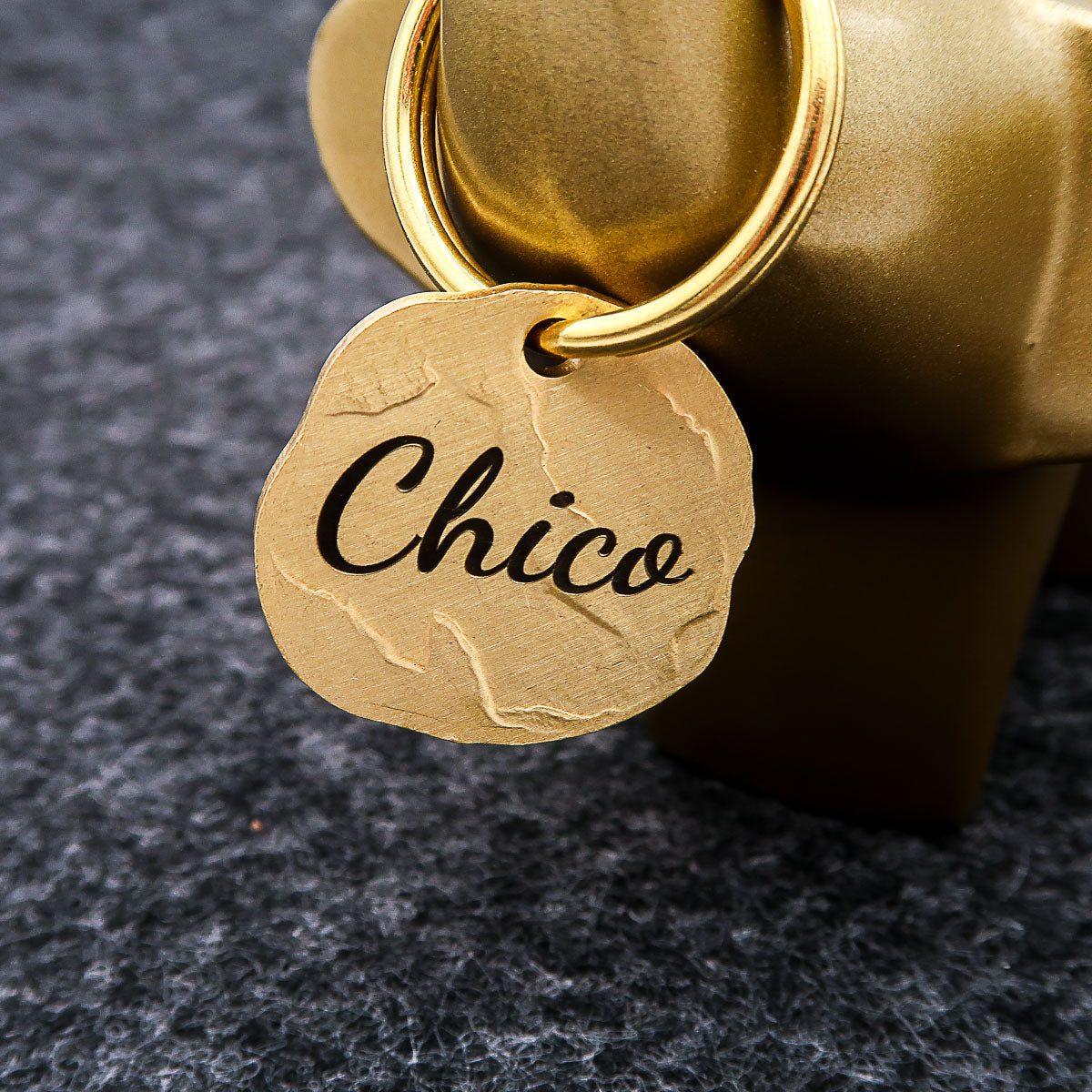 Our beautiful brass dog tag with engraving "Vintage" is an absolute eye-catcher. Each tag has a slightly different shape and looks like it has been hand-forged. The surface is uneven and makes each tag a very special piece. Engraved with your dog's name on the front and your telephone number on the back, it becomes a unique piece. The tag is approx. 2.5 cm in diameter and 2 mm thick.